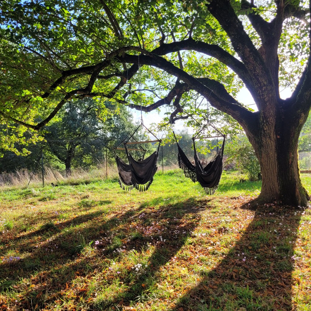 Until the end of my stay, I get two days of good weather for the pool, which I make the most of. I write and have inspiring conversations about writing with Amory, eat, sleep, relax in the hammock and stroke the cats and Eva the dog. I also drink. Mainly tap water and coffee, but also tea. After I arrived, I have been asked what I would like to drink, and I mentioned the chamomile tea that I often drink. There was none available, so I drank verbena, but it turned out that the hosts had made a lot of logistical efforts to source some organic chamomile tea for me by the end of my stay. And there it was: a jar full of beautiful chamomile flowers. I enjoyed drinking it and even received some as a gift. This whole experience is about being heard and seen. In one’s needs and ideas. It’s also the story of how I became a writer.