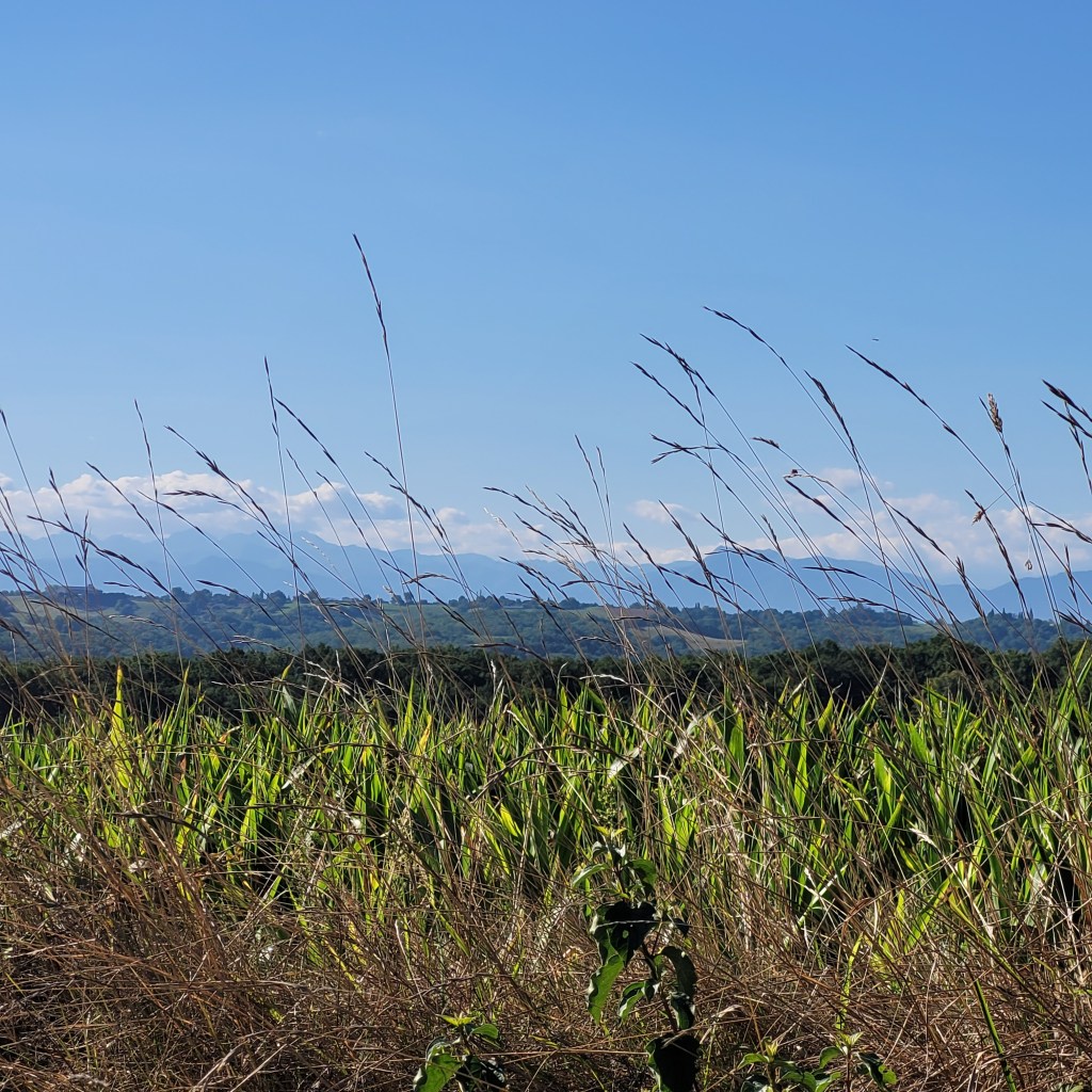 After several days, the sun finally comes out, and I enjoy my meals on the terrace. The view of the Occitan hills is, in a way, a reflection of the beauty of the world. I focus on the landscape, trying to remember as many details as possible. Sometimes, before meals, I go downstairs and sit at the terrace table, doing just this: watching nature. Sometimes I take my little notebook and use the time before the meal to write by hand. I turn around and see probably the most idyllic and magical scene I have ever seen: a cat chasing a butterfly. It lasted only a second or two, but it has been captured in my memory and in these words. This micro-moment becomes very special as I realise that this scene is a common motif in many children’s books – or maybe it’s the only one I remember from my childhood? It’s also something that I had never seen before this moment. Or maybe I had seen it before but wasn’t aware of it?